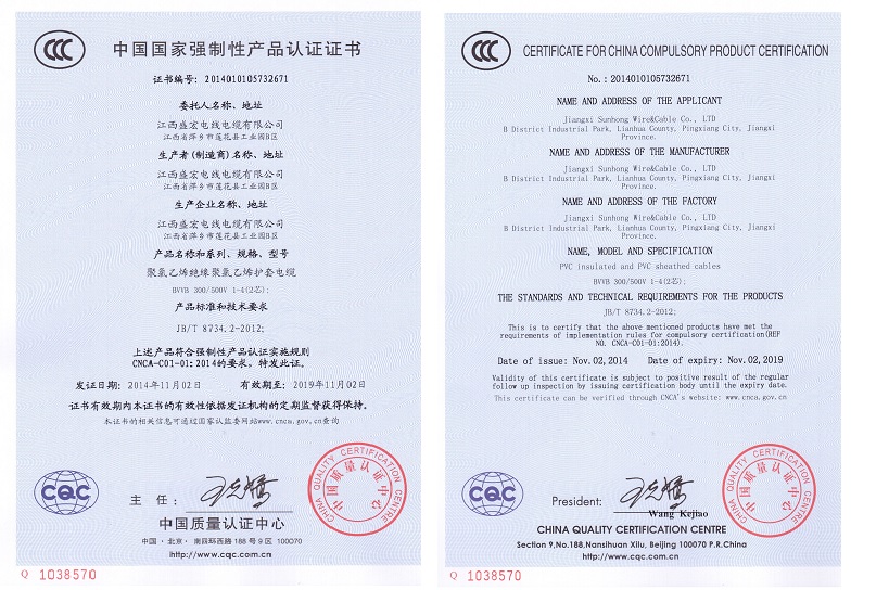 BVVB CCC認證證書